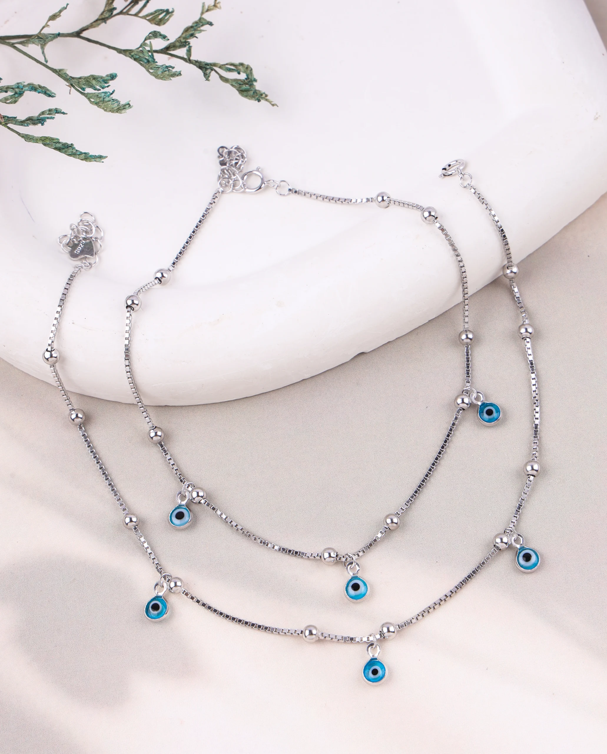 Silver Aura Evil Eye Anklet (Silver)