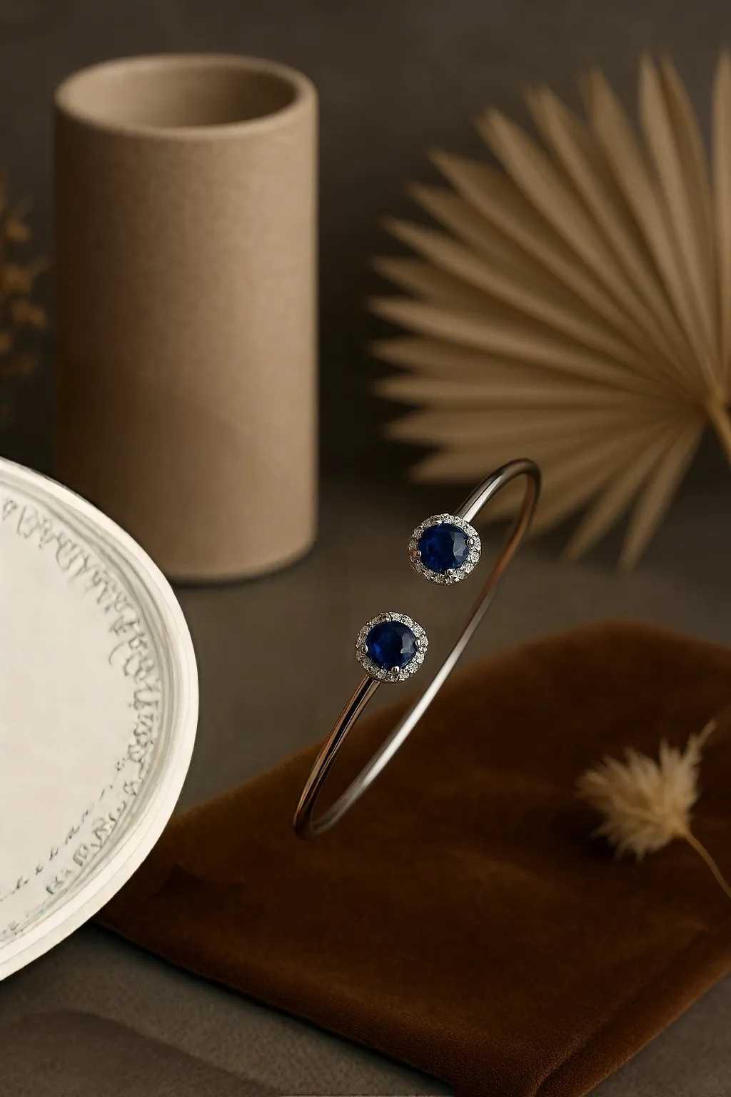 The Azure Empress Cuff exudes regal charm with a sleek, minimalist design crowned by brilliant sapphire-blue stones. A timeless piece crafted for those who appreciate subtle power and refined luxury, this bracelet brings grace and strength to the wrist in equal measure.