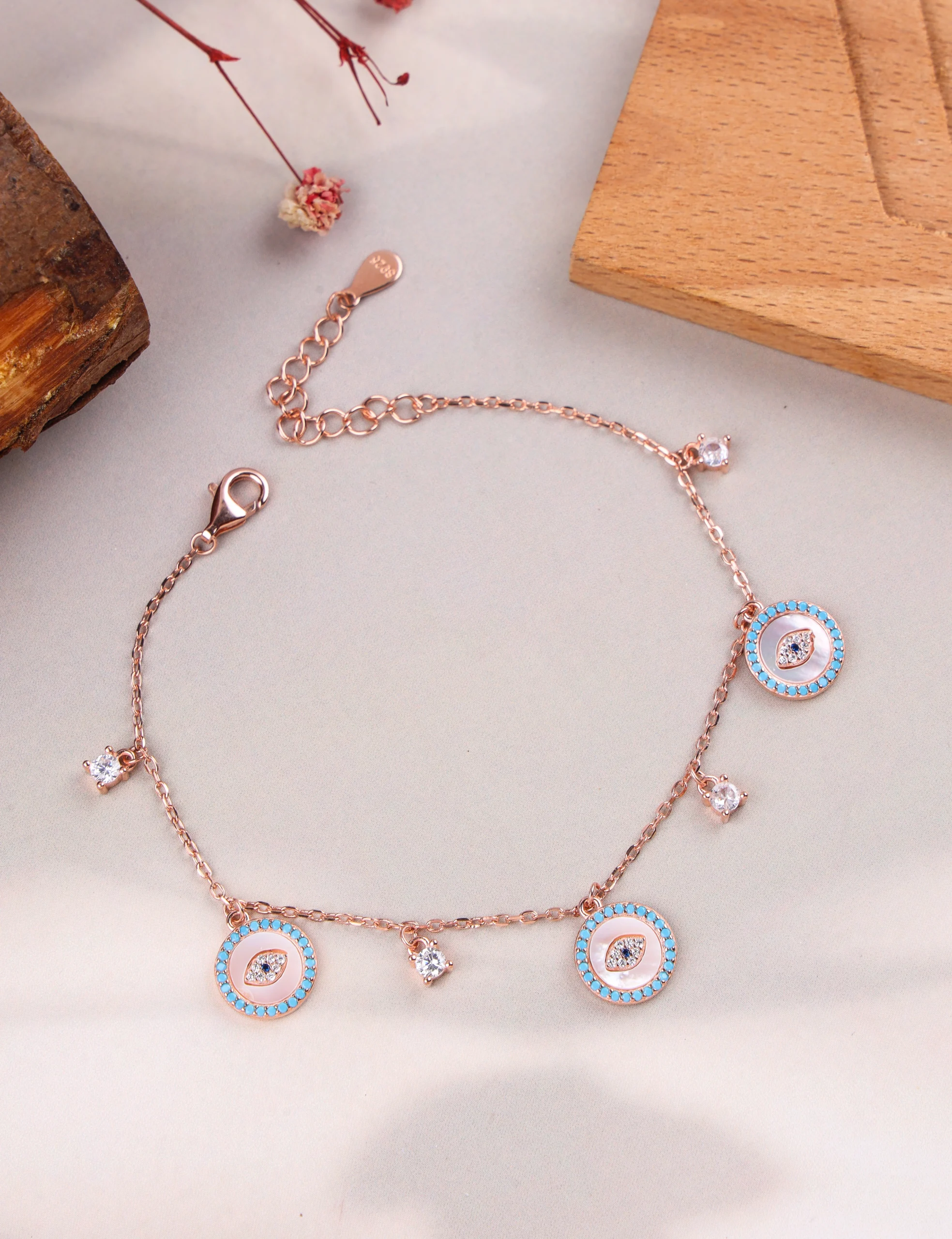 Rose Gold Evil Eye & Diamond Charm Bracelet