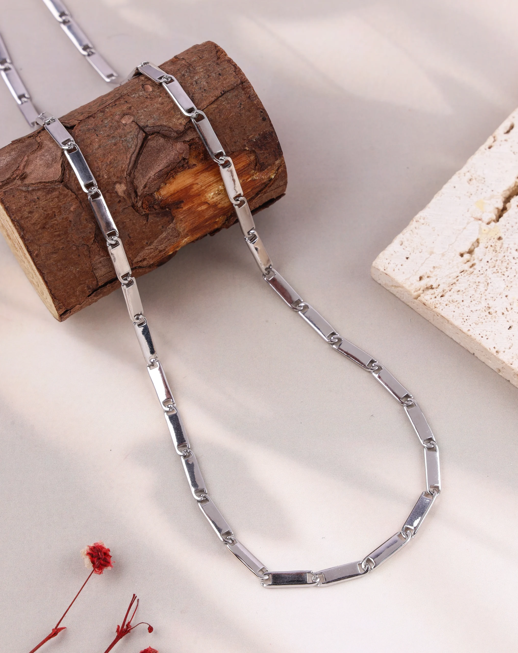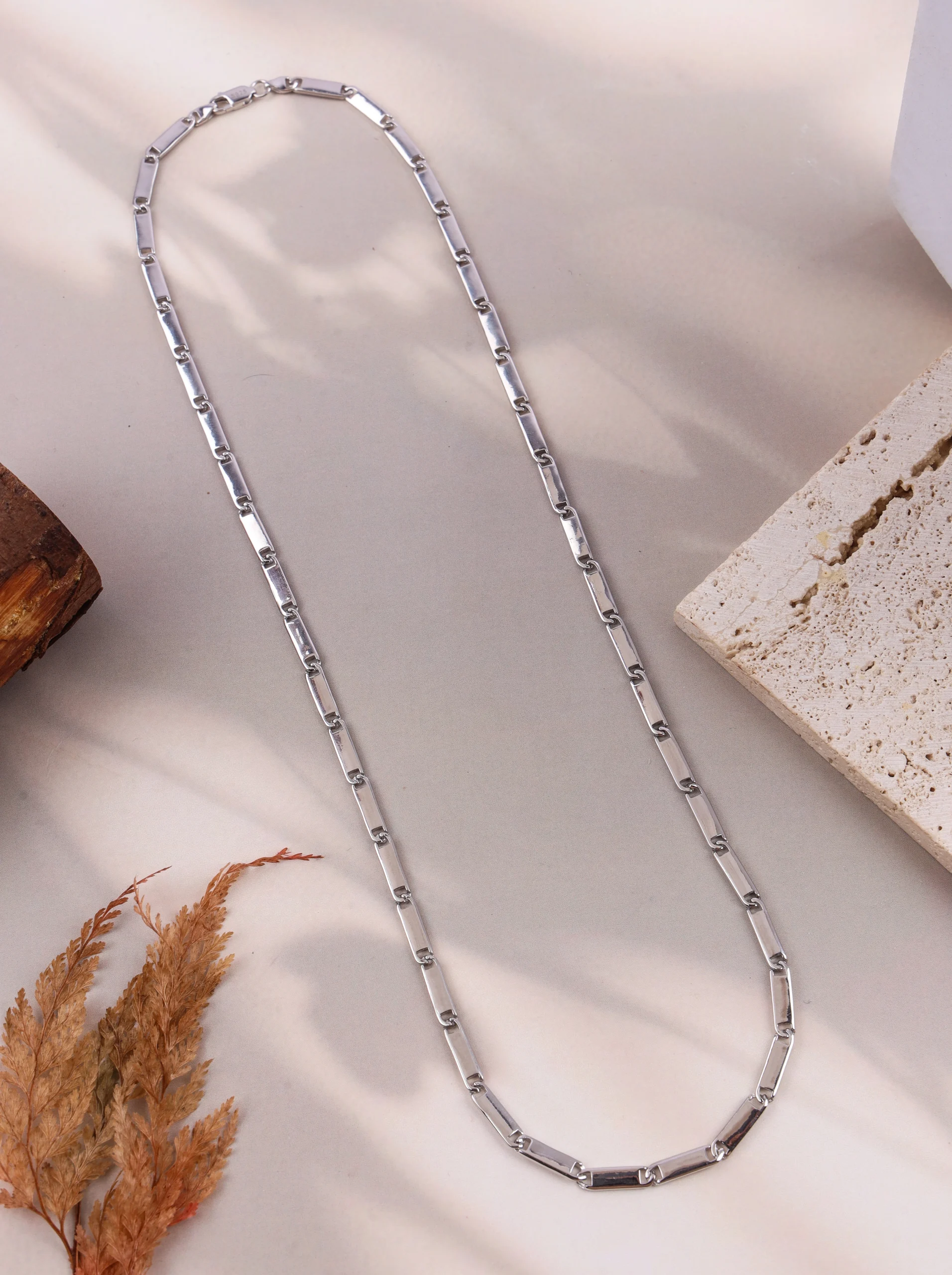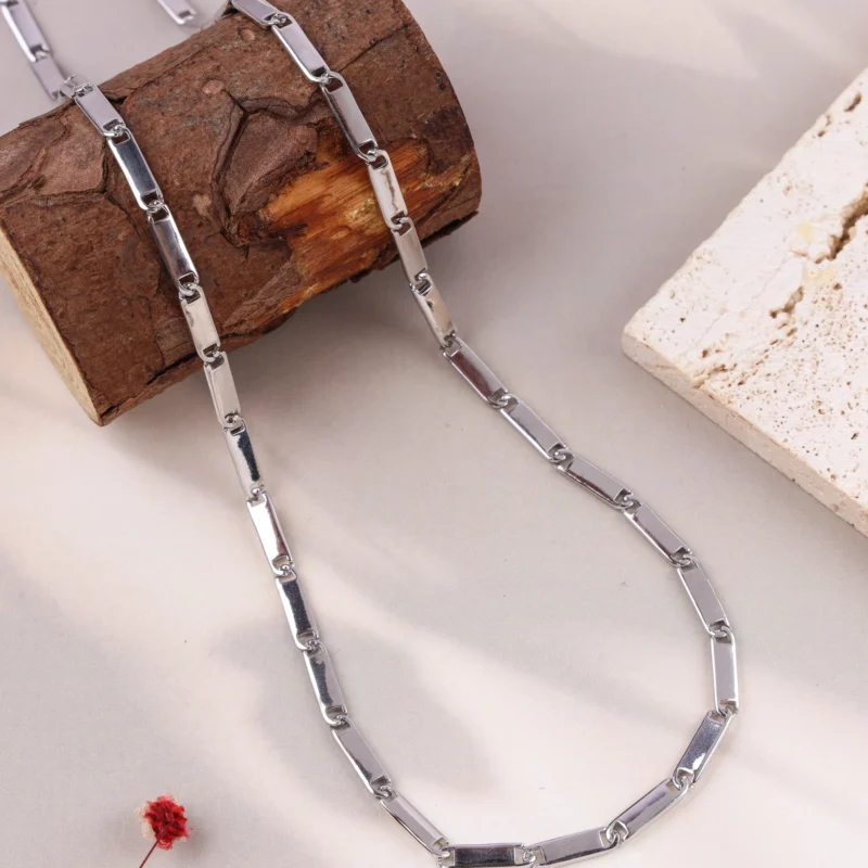 Elevate his style with this striking Men’s Sleek Bar Link Chain, designed for the modern man. Crafted from high-quality 925 sterling silver, this substantial chain features a contemporary bar link design, measuring 4mm in width and a comfortable 20 inches in length. Each link is meticulously rhodium-plated, ensuring a brilliant, durable shine that resists tarnishing and maintains its pristine appearance for years to come. Perfect for daily wear or as a sophisticated accessory for special occasions, this chain offers a bold yet refined statement that complements any attire.