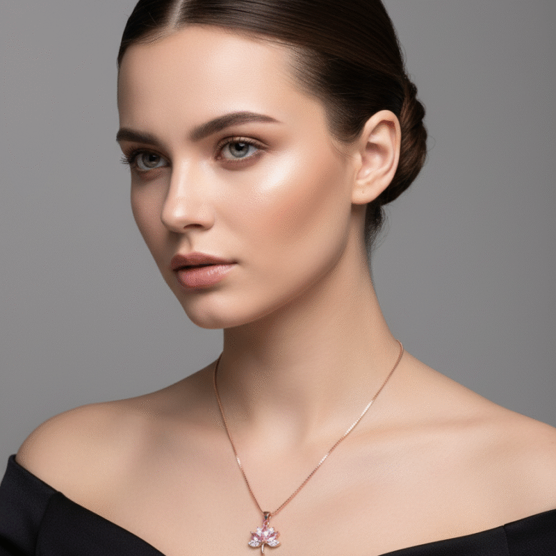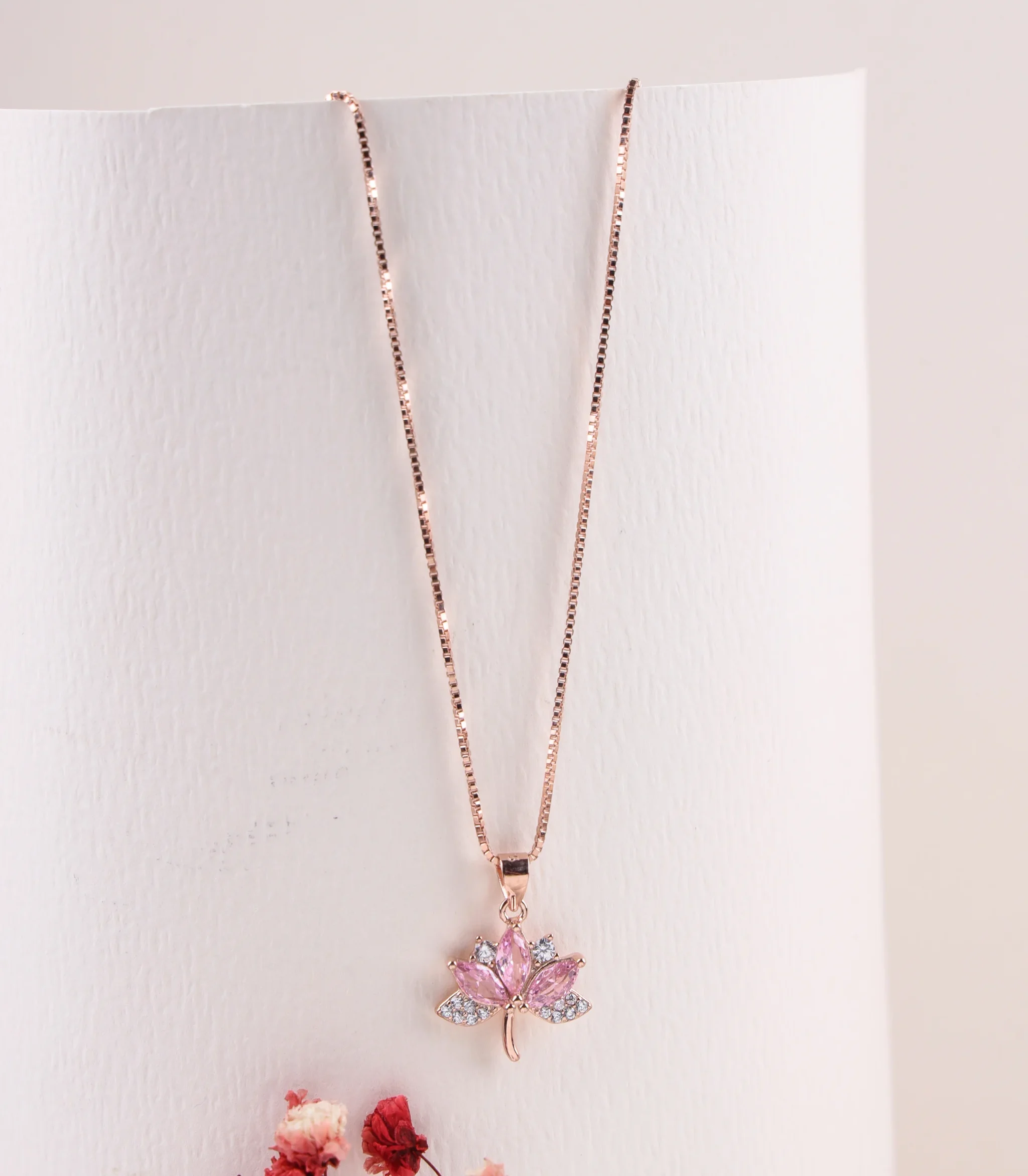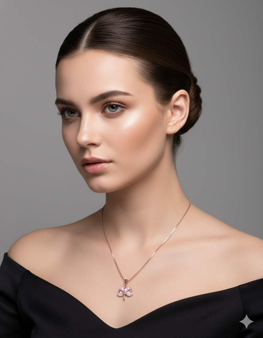 Key Features: Pink cubic zirconia lotus flower, nature-inspired design, symbolic elegance, adjustable length.