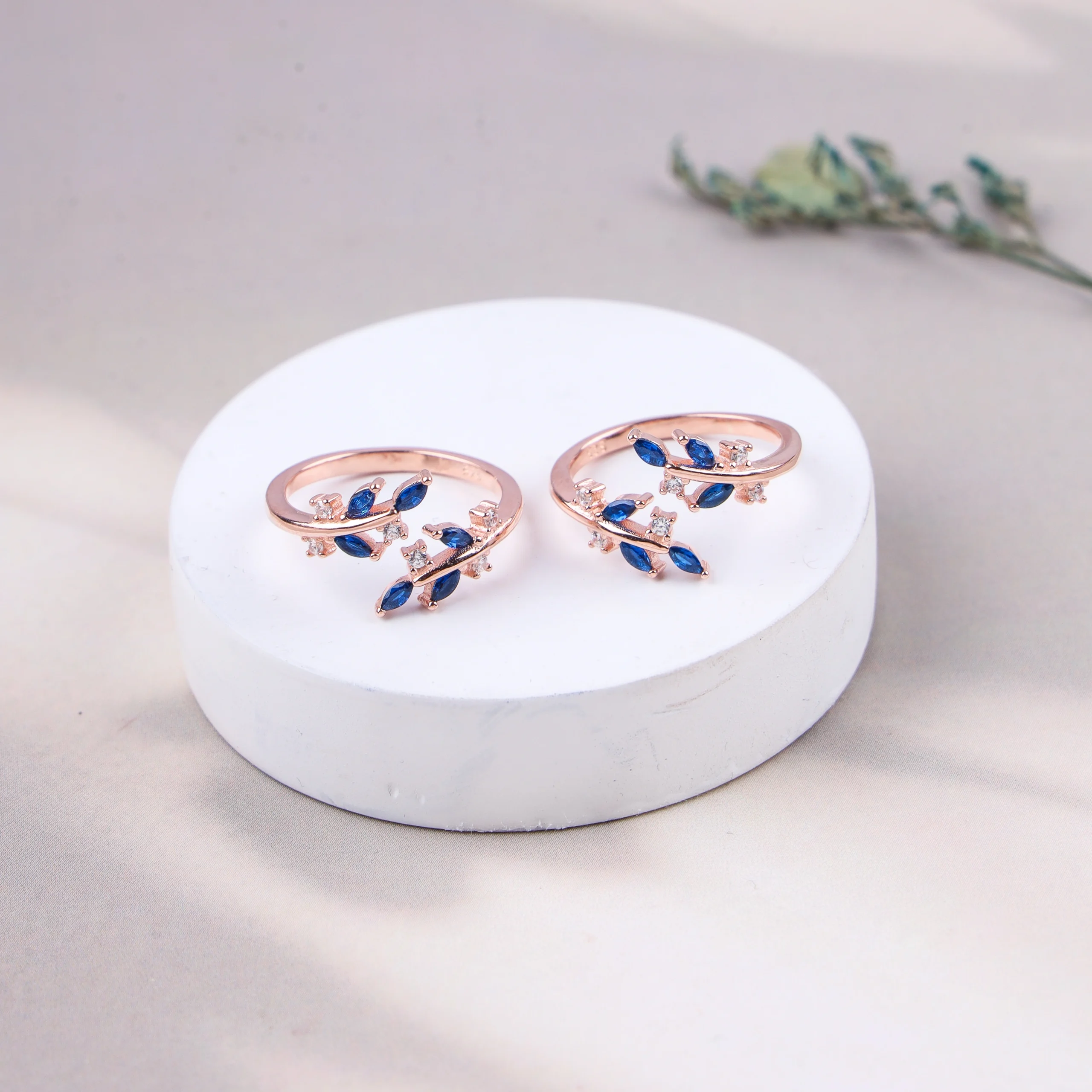 “Adorn your toes with the enchanting beauty of our blueVine Rose Gold Toe Ring. Crafted from premium 925 sterling silver, this exquisite toe ring features a warm and luxurious rose gold plating, adding a touch of sophisticated elegance. The design showcases delicate leaf motifs, some intricately set with sparkling cubic zirconia, beautifully complementing vibrant emerald green marquise-cut stones that resemble fresh leaves on a vine. Its adjustable open-ended design ensures a comfortable and perfect fit for any toe, making it an ideal accessory to add a hint of nature-inspired glamour to your look.”